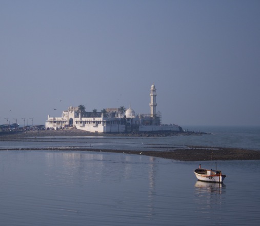 In other words, the sights of Mumbai. This is the famous Haji Ali mosque in the southern part of Mumbai . Irrespective of religion, caste or social standing, thousands are drawn to this benevolent saint for his blessings.